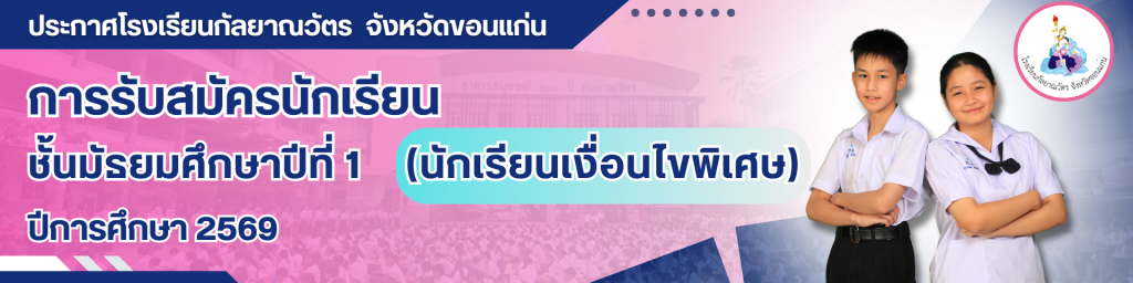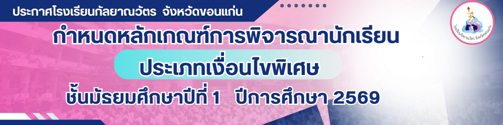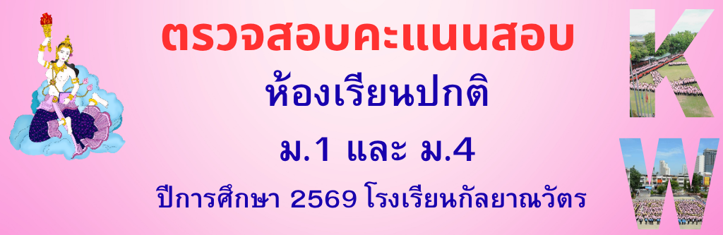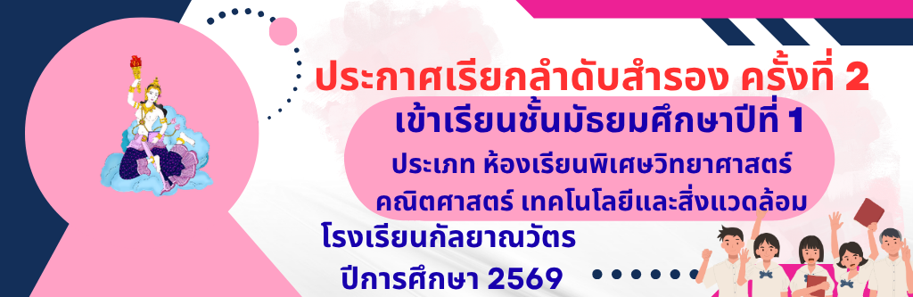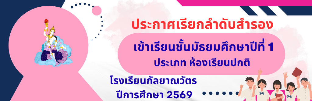 ประกาศโรงเรียนกัลยาณวัตร เรื่องประกาศรายชื่อผู้สอบผ่านการคัดเลือก ลูกจ้างชั่วคราว ปฏิบัติหน้าที่นักจิตวิทยาในโรงเรียน อ่านต่อ » มกราคม 26, 2026